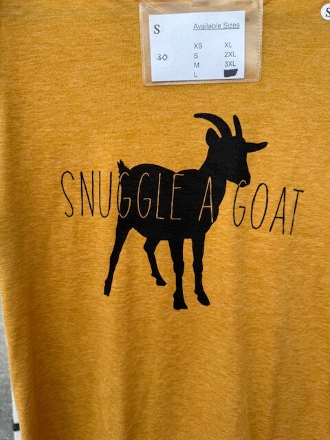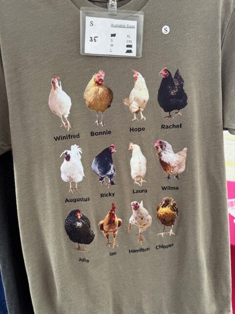 The only thing that beats the t-shirt options are the stickers and magnets. Come swing by the Barn Sanctuary and get to know the names of the animals that inspire the merch!