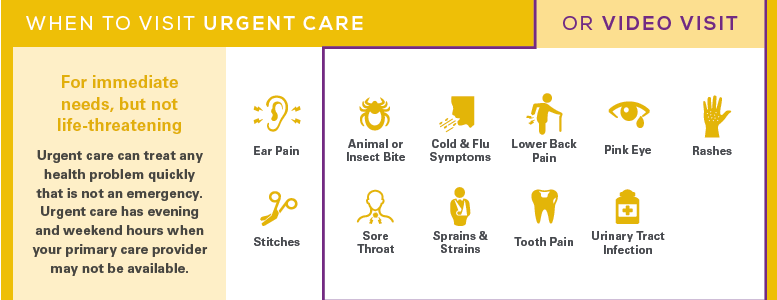 If you’re still unsure of where to go for appropriate medical care, it’s best to check with your primary care provider.